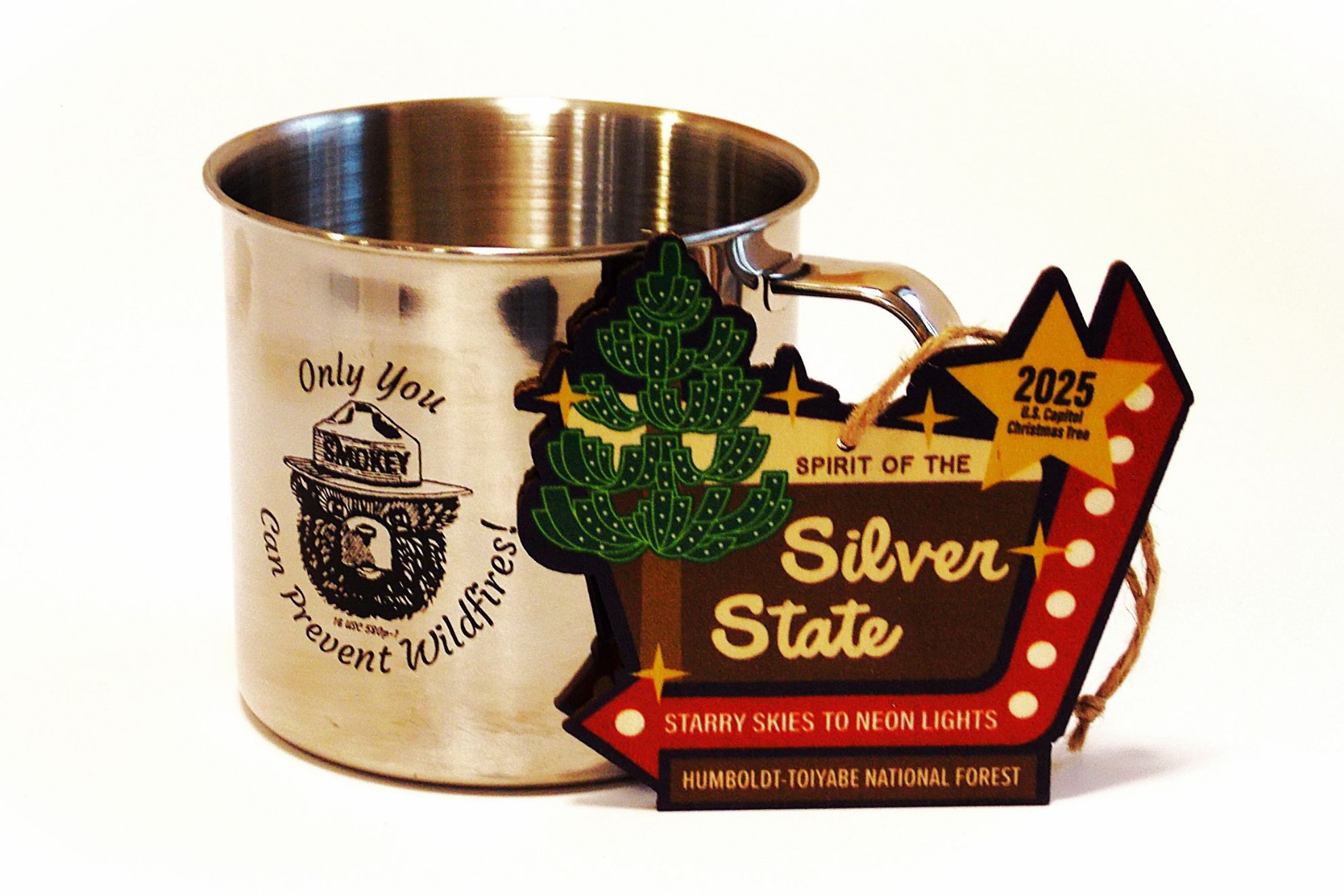 2025 Capitol Christmas Ornament, Spirit of the Silver State. Humboldt-Toiyabe National Forest in Nevada. Wooden ornament with twine hangar.